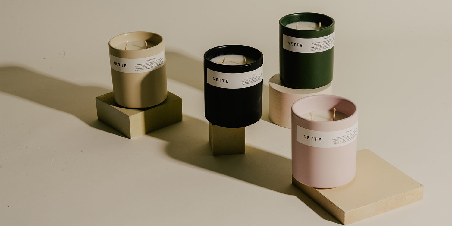 Nette is a clean and sustainable candle brand that cares for you and the planet. Each candle is made from non-toxic, coconut-soy wax and poured in a vessel by a family-owned glass blowing company in Italy who makes all their glass vessels by hand, or a ceramicist in Philadelphia who creates their ceramic vessels. Additionally, Nette partners with a fragrance house to develop scents with 100% traceable ingredients, uses GOTS-certified organic cotton wicks, and presents products in super luxe packaging made from recycled shoe boxes and printed with seaweed ink.